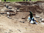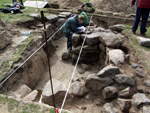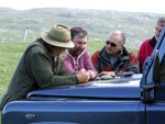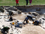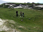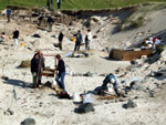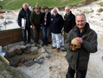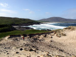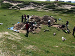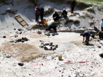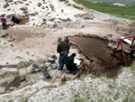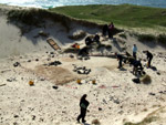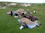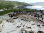 | Bodies in the Dunes - Barra After detailed logistical planning the team arrived in May last year on the island of Barra off the coast of Scotland, famous for its sand dunes which have been home to many people for over 4,000 years.For some it was a major road and boat trip, while others came by air to fly into the only only beach airport in the world to handle scheduled airline services. The three days on site were just the tip of the travel iceberg.... A recent storm ripped one of the dunes apart revealing Bronze Age graves and the remains of ancient houses. The team had to work in the face of the fierce Barra weather to preserve a collection of Iron Age ornaments before they were gone forever, including the remains of a cooking pot and tools crafted from animal bones. |