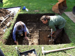 | The Naughty Nuns - Towcester What have a Northampton family, the burial of a family pet, a family home, some stone sarcophagi in an odd circular enclosure and an old nunnery all got in common? This week the Team have to solve the mysteries of this picturesque back garden whose previous occupants were at various times accused of witchcraft, begging and debauchery. And, of course, they have just three days..... |